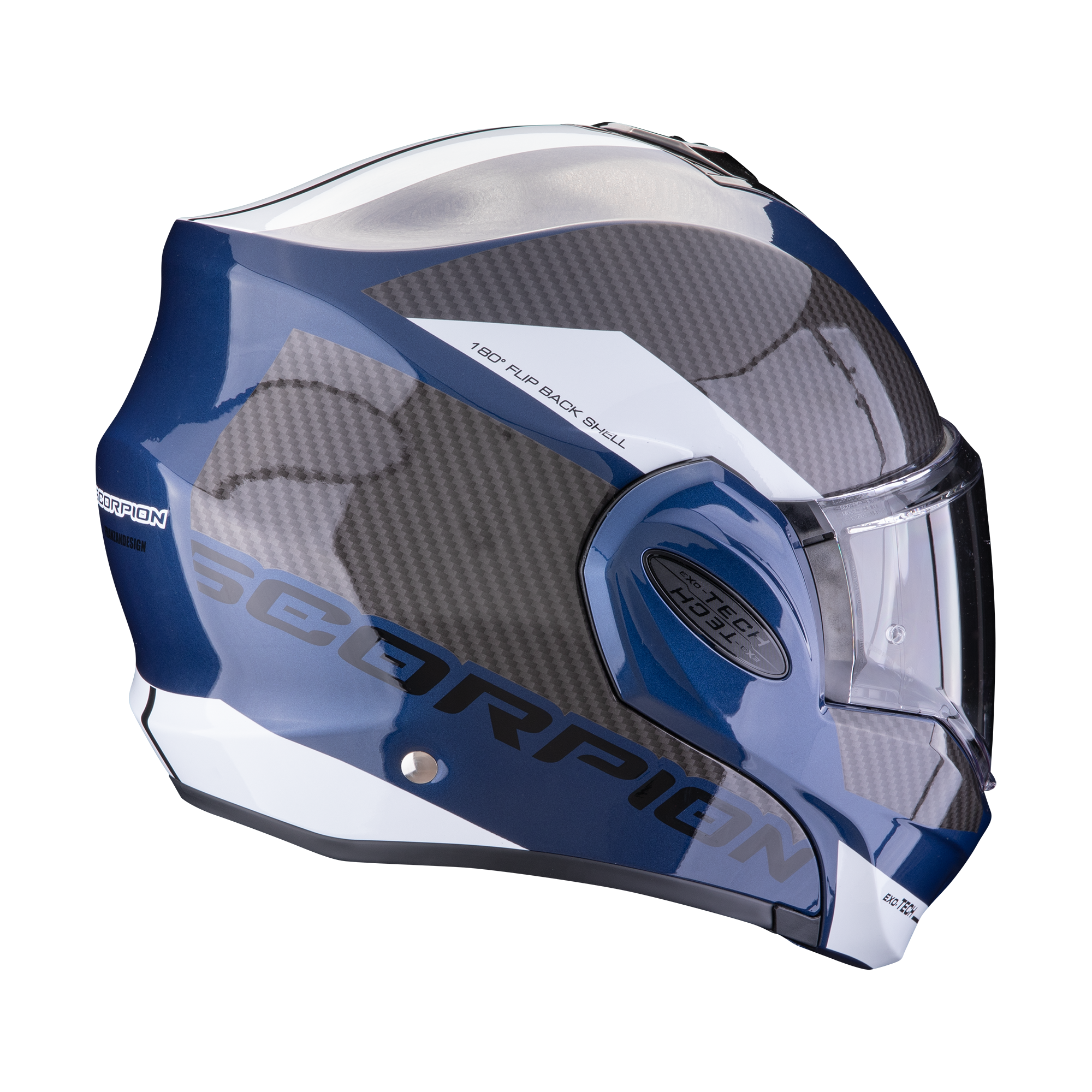 "O Scorpion EXO-TECH é um capacete modular de estilo “flip-back” com 2 tamanhos de calota para um encaixe perfeito.